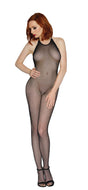 Seamless fishnet open crotch bodystocking with halter neck and low back. G-string not included