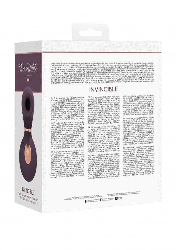 The Invincible has a super powerful 10 speed new generation F1 motor that accommodates any woman's shape and is perfectly shaped to create the most intense orgasm ever experienced! The Invincible has a rechargeable battery with a magnetic USB charging port and included charger. When fully charged it will last for 60 min It's soft to the touch, smooth and waterproof design is made from medical grade silicone, making the Invincible easy to clean.