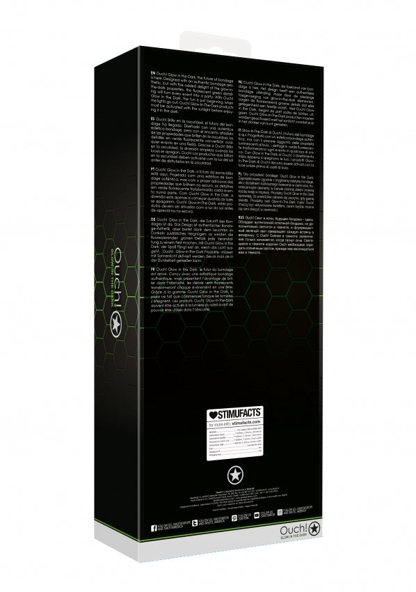 Ouch! Glow in the Dark, the future of bondage is here. Designed with an authentic bondage aesthetic, but with the added delight of the glow-in-the-dark properties, the fluorescent green detailing will turn every event into a part. With Ouch! Glow in the Dark, the fun is just beginning when the lights go out.